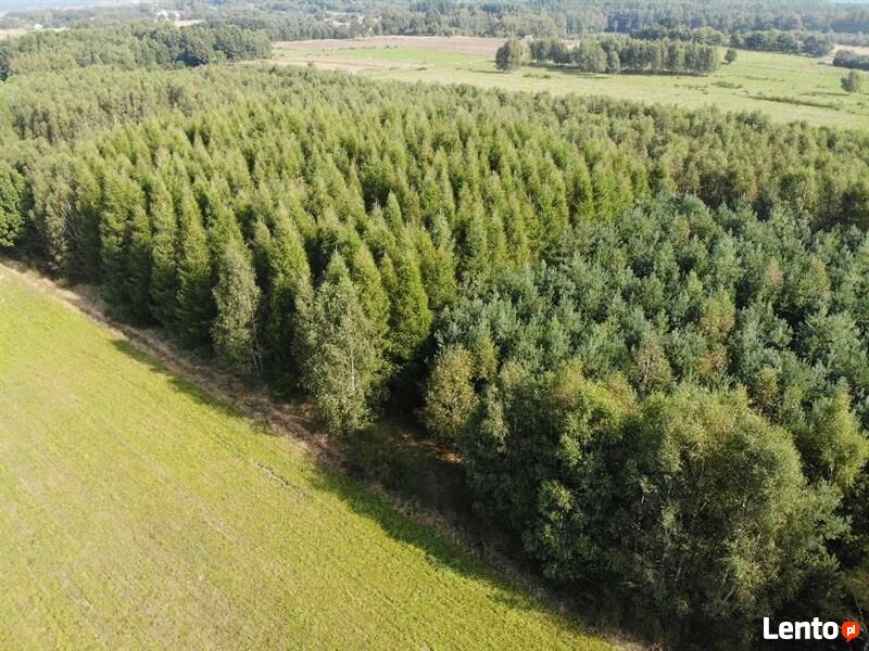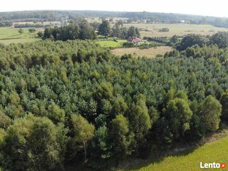 Teren płaski, część działki 3100 m niezalesiona, pozostałe 20 000 m zalesione.